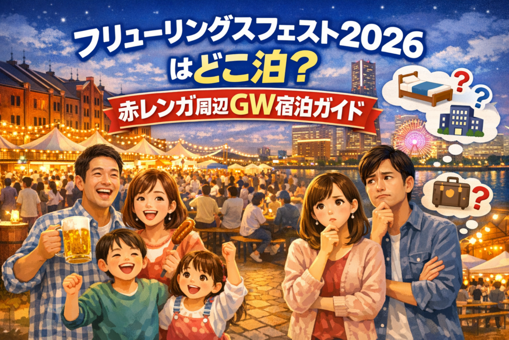 ヨコハマフリューリングスフェストに行きたいと思ったとき、まず迷いやすいのは、イベント内容そのものより「赤レンガに行くなら、どこに泊まると動きやすいか」ではないでしょうか。